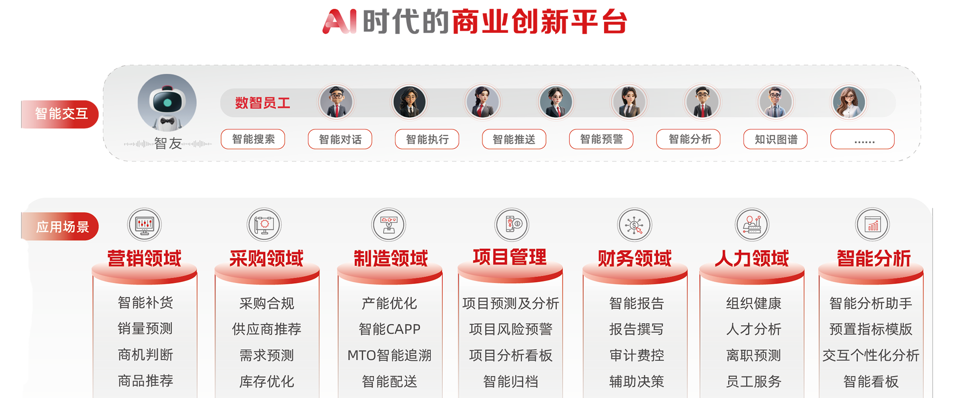 用友BIP 5 提供覆盖财务、人力、供应链、营销、采购、制造、研发、项目、资产及协同的10大核心领域,是目前全球覆盖领域最多的企业云服务群,满足企业数智化业务融合发展的需求。